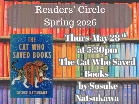 Bringing our Winter/Spring 2026 “semester” of Readers’ Circle to a close we will be discussing a charming Japanese novel, in English translation, about a book-loving high school student (also the grandson of an antiquarian bookseller) who meets a talking cat named Tiger demanding his help on an epic quest to save books. Together they rescue unread literature and hidden gems from their neglectful owners. This offbeat cozy fantasy novel will finish our series with a much-needed dose of wit and whimsy. If you like this book, you’ll probably love its sequel, The Cat Who Saved the Library (2025).