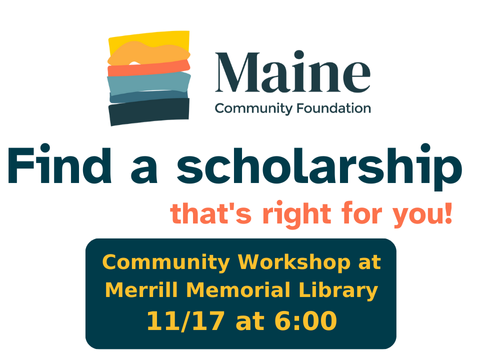Merrill Memorial Library 215 Main St., Yarmouth, ME, United StatesOn November 17th @ 6pm we will be hosting the Maine Community Foundation for a Q&A about finding scholarships. This workshop is a great opportunity for high school students, current college […]