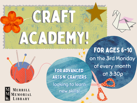 Merrill Memorial Library 215 Main St., Yarmouth, ME, United StatesAfter school crafting for ages 6-10
